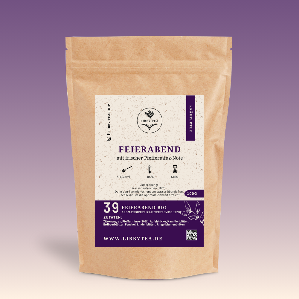 Perfekt für den Feierabend. Kräuterteemischung ohne Koffein in Bio Qualität.